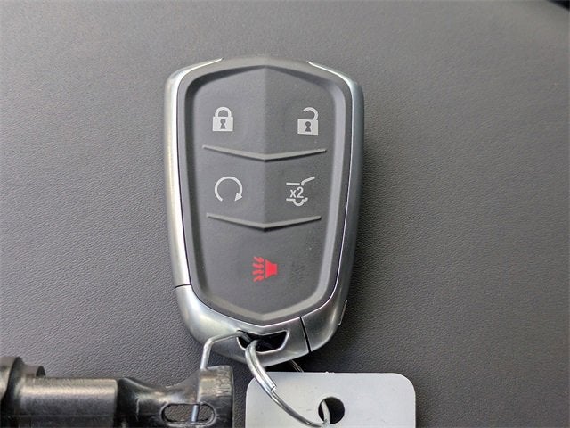 - Opens or closes when the system senses the key fob and the driver extends their foot under the left-hand side of the rear bumper over an image of the Cadillac Crest projected under the vehicle