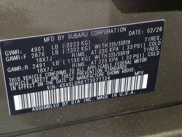 - Wheels: 18" x 7.0 J Dark Metallic Aluminum-Alloy -inc: machine finish and black wheel center cap w/Subaru 6 star logo