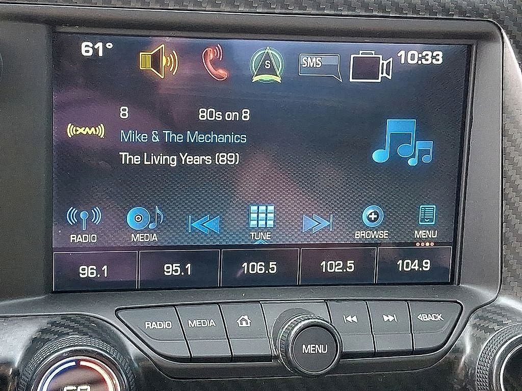THIS VEHICLE INCLUDES THE FOLLOWING FEATURES AND OPTIONS: 4-Wheel Disc Brakes, 8-Way Driver & Passenger Seat Adjusters, 9 Speakers, ABS brakes, Air Conditioning, Alloy wheels, AM/FM radio: SiriusXM, Apple CarPlay, Automatic temperature control, Bose Premium 9-Speaker Audio System Feature, Bumpers: body-color, Compass, Delay-off headlights, Driver door bin, Driver vanity mirror, Dual front impact airbags, Dual front side impact airbags, Electronic Stability Control, Emergency communication system, Exterior Parking Camera Rear, Four wheel independent suspension, Front anti-roll bar, Front Bucket Seats, Front Center Armrest, Front dual zone A/C, Front reading lights, Fully automatic headlights, GT Bucket Seats, Heated door mirrors, High-Intensity Discharge Headlights, Illuminated entry, Leather Shift Knob, Leather steering wheel, Low tire pressure warning, Occupant sensing airbag, Outside temperature display, Painted Body-Color Carbon Fiber Removable Roof Panel, Panic alarm, Passenger door bin, Passenger vanity mirror, Power door mirrors, Power driver seat, Power passenger seat, Power steering, Power windows, Premium audio system: Chevrolet MyLink, Radio data system, Rear anti-roll bar, Rear window defroster, Remote keyless entry, Speed control, Speed-sensing steering, Spoiler, Sport steering wheel, Steering wheel mounted audio controls, Tachometer, Telescoping steering wheel, Tilt steering wheel, Traction control, Trip computer, Variably intermittent wipers, Voltmeter, and Wheels: 19 x 8.5 Fr & 20 x 10 Rr 5-Split Spoke. Odometer is 15223 miles below market average!