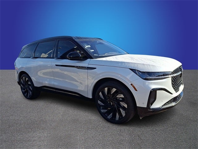 This Vehicle Includes the Following Options: Equipment Group 201A (Lincoln BlueCruise Equipped (90-Day Trial)), Jet Appearance Package (87T) (Black Exterior Elements, Body Color, and Wheels: 22 Satin Dark Luster Nickel), 10 Speakers, 3.81 Axle Ratio, 360 Degree Camera, 4-Wheel Disc Brakes, ABS brakes, Active Park Assist 2.0, Adaptive suspension, Air Conditioning, Alexa Built-In, Alloy wheels, AM/FM Radio, AM/FM radio: SiriusXM with 360L, Apple CarPlay/Android Auto, Auto High-beam Headlights, Auto tilt-away steering wheel, Auto-dimming Rear-View mirror, Automatic temperature control, Blind Spot Info. System w/Cross-Traffic Alert, Brake assist, Bumpers: body-color, Compass, Delay-off headlights, Driver door bin, Driver vanity mirror, Dual front impact airbags, Dual front side impact airbags, Electronic Stability Control, Emergency communication system: 911 Assist, Exterior Parking Camera Rear, Four wheel independent suspension, Front anti-roll bar, Front Bucket Seats, Front Center Armrest w/Storage, Front dual zone A/C, Front reading lights, Fully automatic headlights, Garage door transmitter: HomeLink, Heated door mirrors, Heated front seats, Heated steering wheel, Illuminated entry, Intelligent Adaptive Cruise Control, Knee airbag, Leather steering wheel, Low tire pressure warning, Memory seat, Navigation System, Occupant sensing airbag, Outside temperature display, Overhead airbag, Overhead console, Panic alarm, Passenger door bin, Passenger vanity mirror, Power door mirrors, Power driver seat, Power Liftgate, Power passenger seat, Power steering, Power windows, Prem Lthr-Trimmed Heated/Ventilated Captain Seats, Radio data system, Rain sensing wipers, Rear anti-roll bar, Rear reading lights, Rear seat center armrest, Rear window defroster, Rear window wiper, Remote keyless entry, Security system, Speed control, Speed-sensing steering, Speed-Sensitive Wipers, Split folding rear seat, Spoiler, Steering wheel memory, Steering wheel mounted audio controls, Tachometer, Telescoping steering wheel, Tilt steering wheel, Traction control, Trip computer, Turn signal indicator mirrors, Variably intermittent wipers, Ventilated front seats, and Wheels: 21 Ultra Bright Machined Aluminum.
