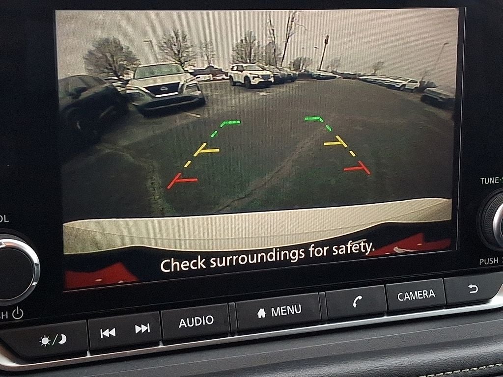 THIS VEHICLE INCLUDES THE FOLLOWING FEATURES AND OPTIONS: AWD, 17 Aluminum Alloy Wheels, 4 Speakers, 4-Wheel Disc Brakes, 5.676 Axle Ratio, ABS brakes, Air Conditioning, Alloy wheels, AM/FM radio: SiriusXM, Auto High-beam Headlights, Blind Spot Warning, Brake assist, Bumpers: body-color, Cloth Seat Trim, Delay-off headlights, Driver door bin, Driver vanity mirror, Dual front impact airbags, Dual front side impact airbags, Electronic Stability Control, First Aid Kit, Floor Mats w/1-Piece Cargo Area Protector, Four wheel independent suspension, Front anti-roll bar, Front Bucket Seats, Front Center Armrest, Front reading lights, Fully automatic headlights, Illuminated entry, Knee airbag, Low tire pressure warning, NissanConnect featuring Apple CarPlay and Android Auto, Occupant sensing airbag, Outside temperature display, Overhead airbag, Overhead console, Panic alarm, Passenger door bin, Passenger vanity mirror, Power door mirrors, Power steering, Power windows, Radio data system, Radio: AM/FM NissanConnect, Rear anti-roll bar, Rear Parking Sensors, Rear seat center armrest, Rear side impact airbag, Rear window defroster, Rear window wiper, Remote keyless entry, Speed control, Speed-Sensitive Wipers, Split folding rear seat, Spoiler, Steering wheel mounted audio controls, Tachometer, Telescoping steering wheel, Tilt steering wheel, Traction control, Trip computer, and Variably intermittent wipers. 28/35 City/Highway MPG